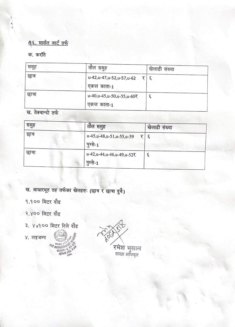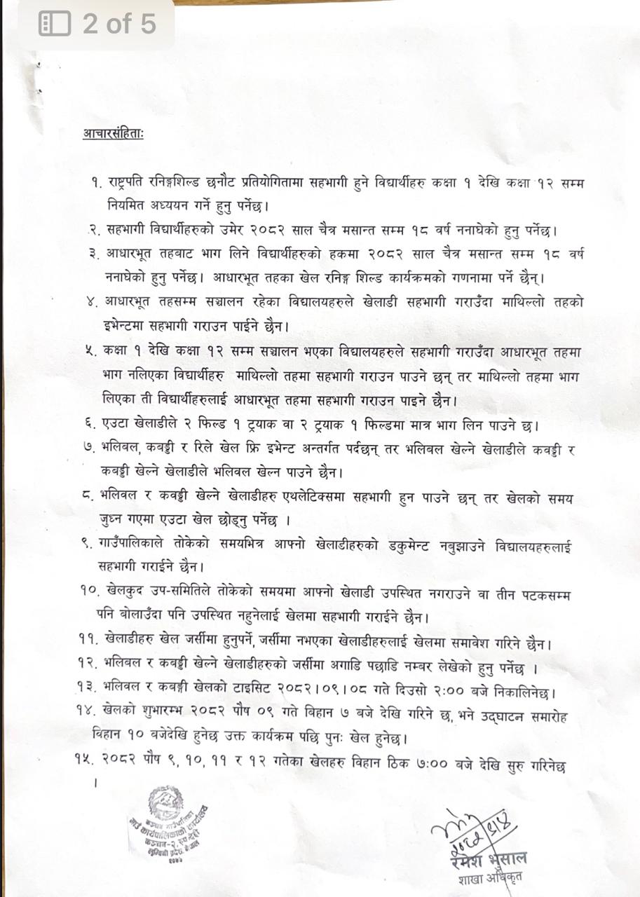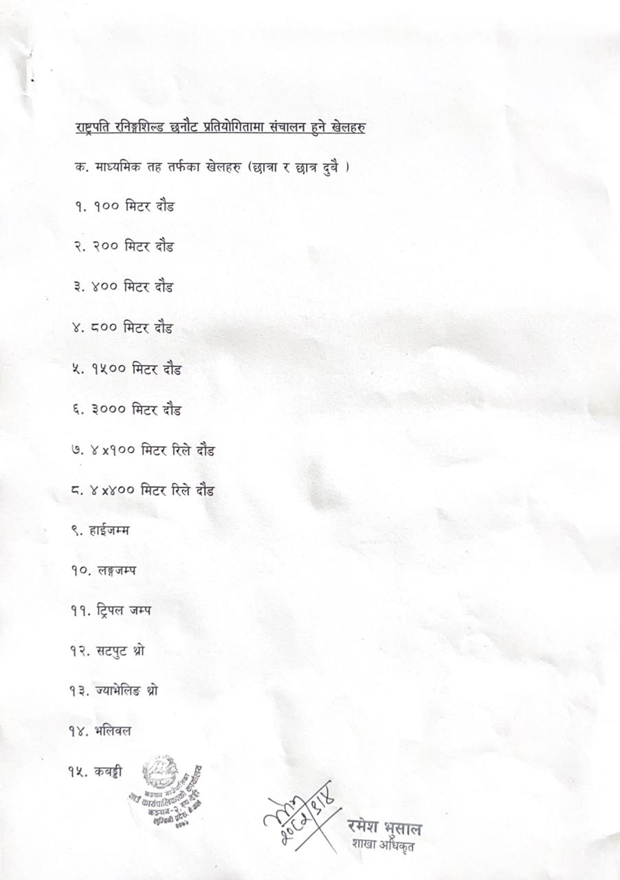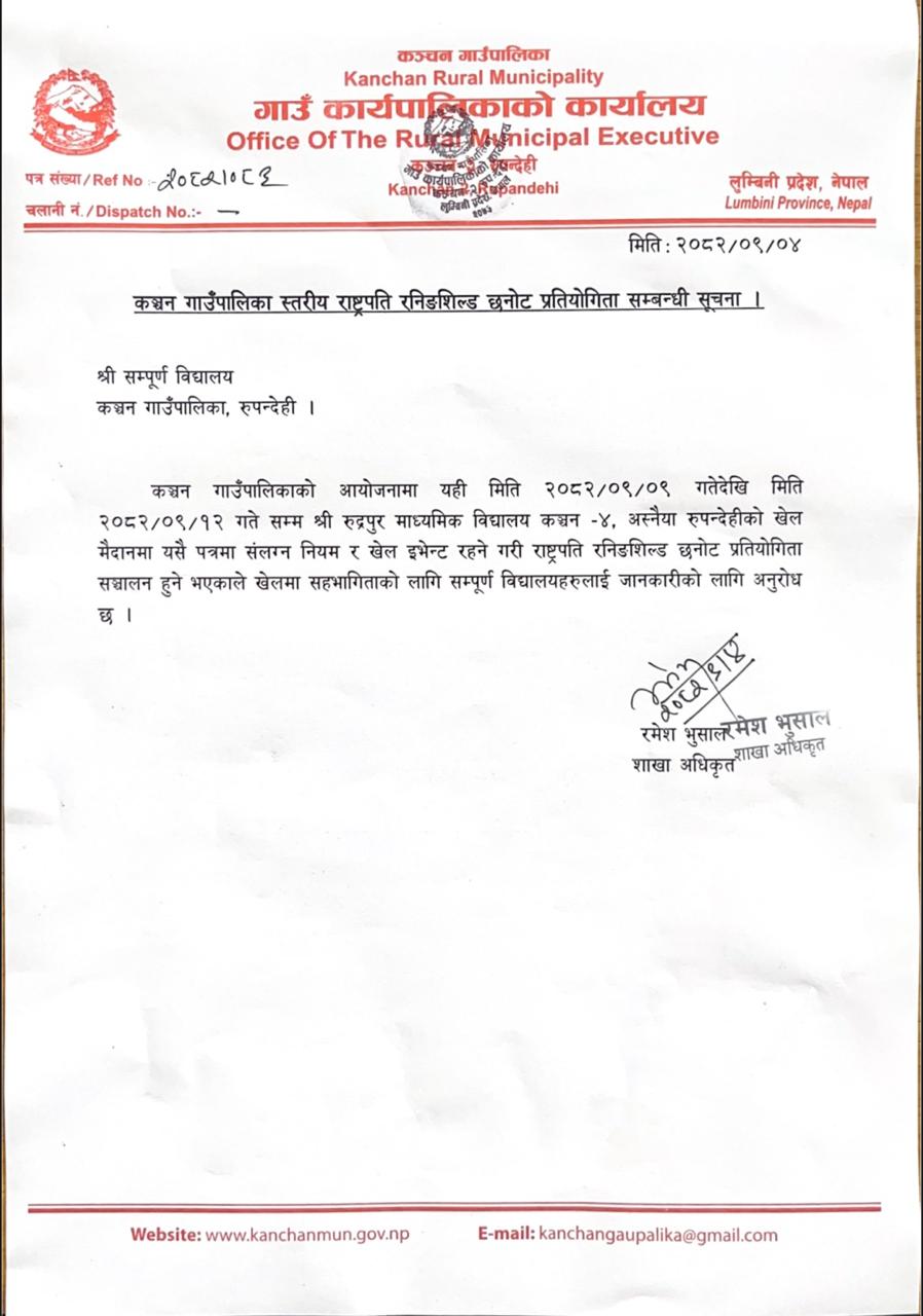 कञ्चन गाउँपालिका स्तरीय राष्ट्रपति रनिङ सिल्ड छनाैट प्रतियोगिता सम्बन्धी सूचना ।