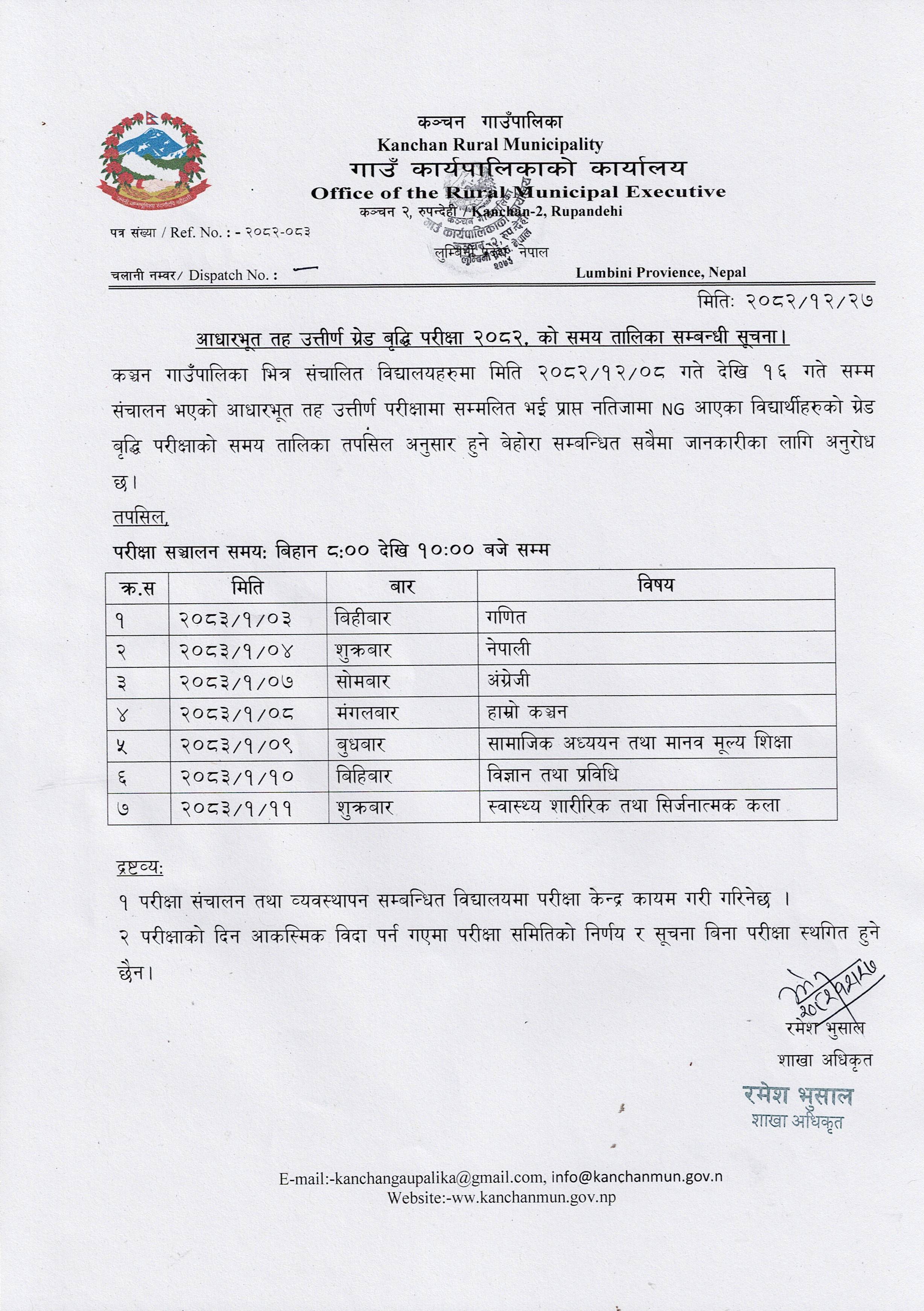 ग्रेड वृद्धि परिक्षाको समय तालिका सम्बन्धी सूचना ।