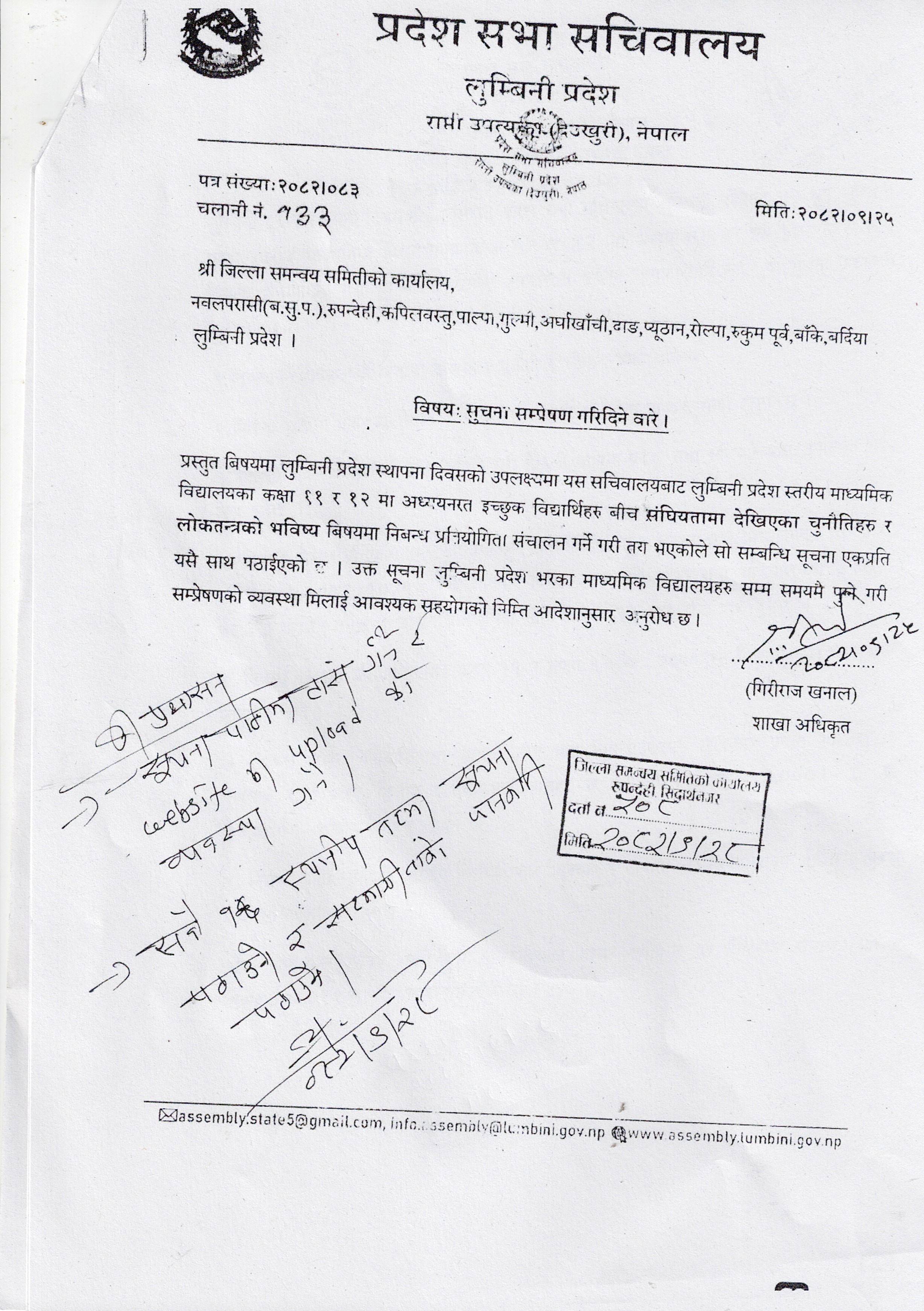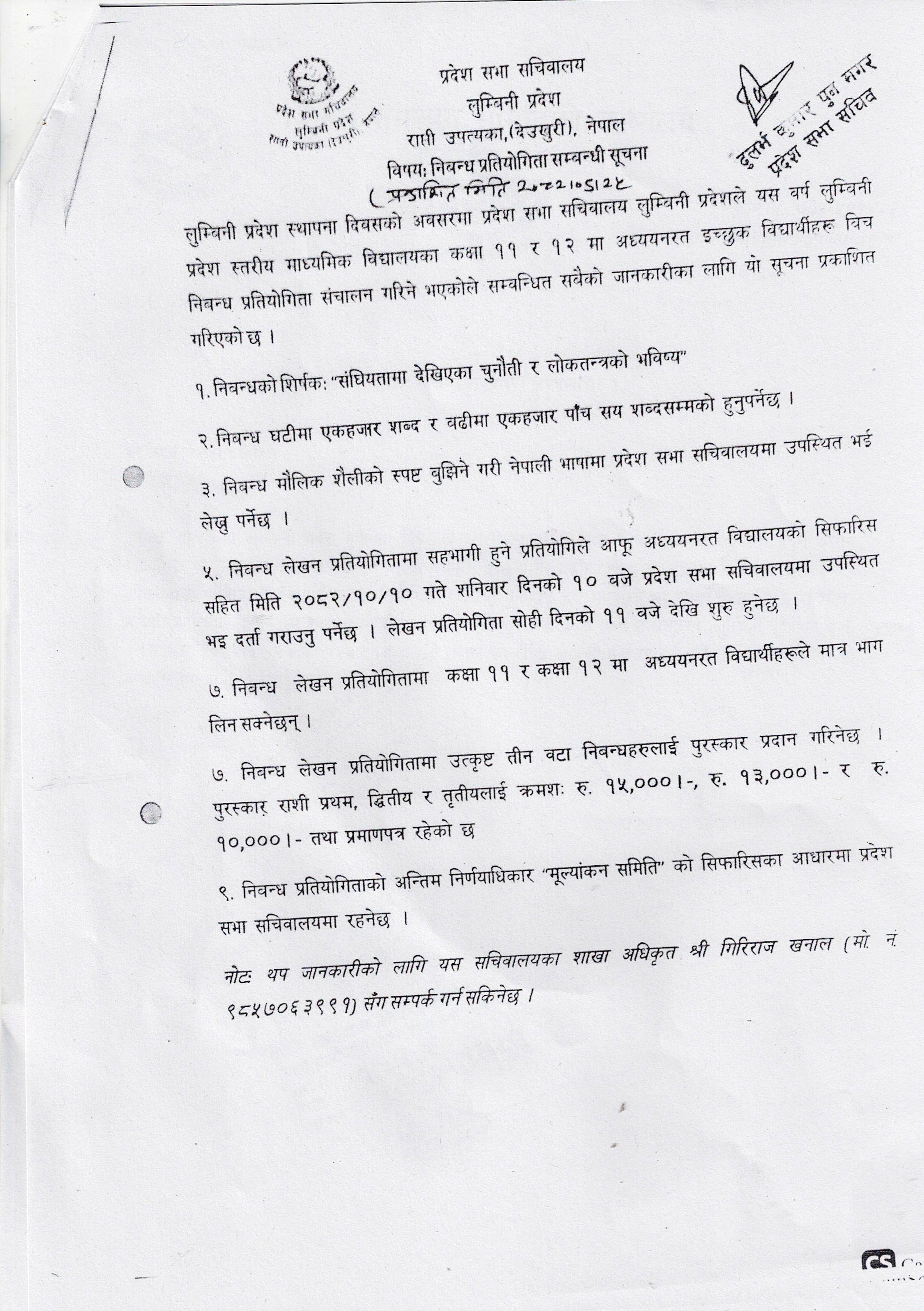 निबन्ध प्रतियोगिता संचालन सम्बन्धी सूचना ।