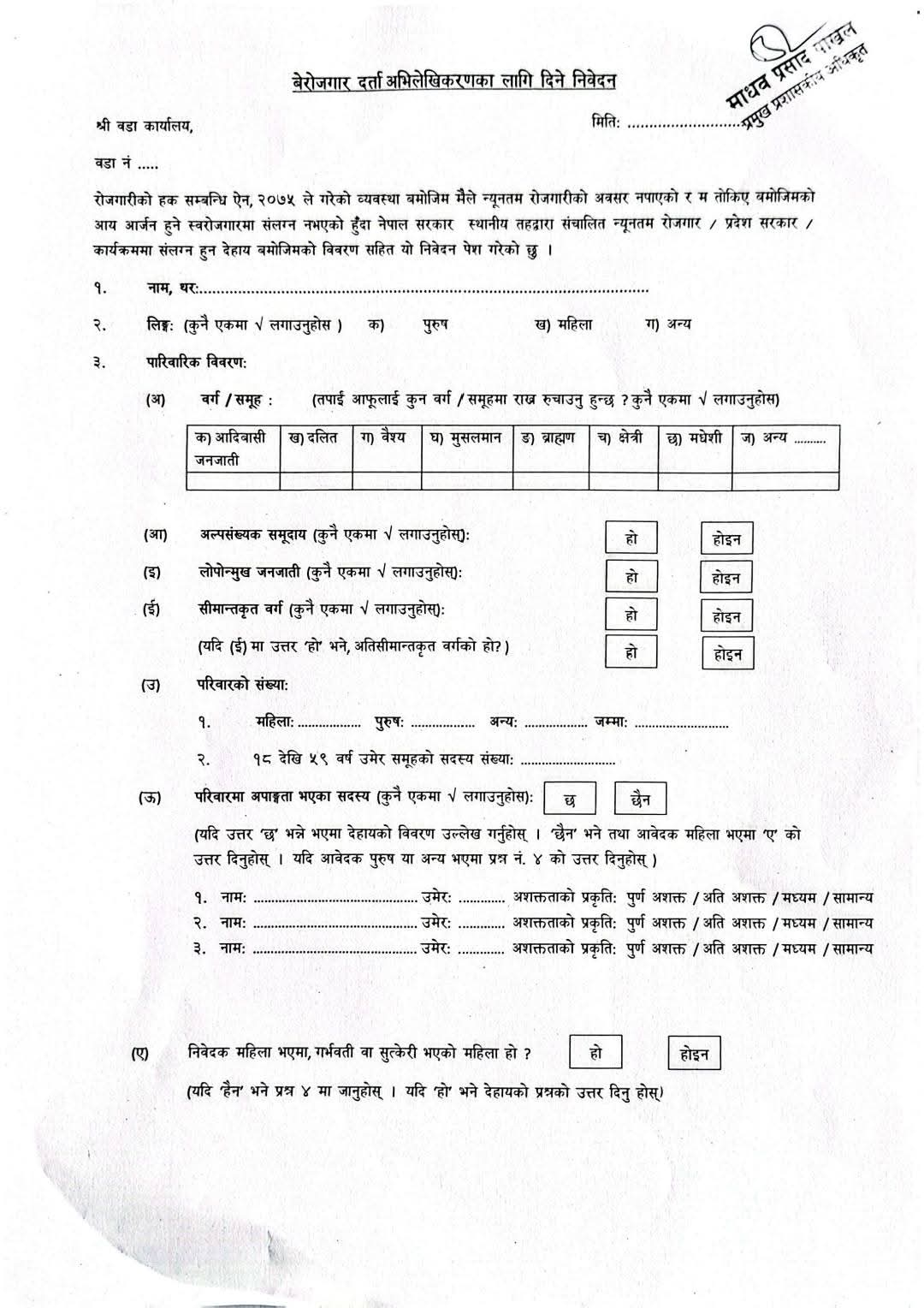 बेरोजगार व्यक्तिको सूचिमा सूचिकृत हुने सम्बन्धी सूचना को समयावधि थप सम्बन्धमा ।