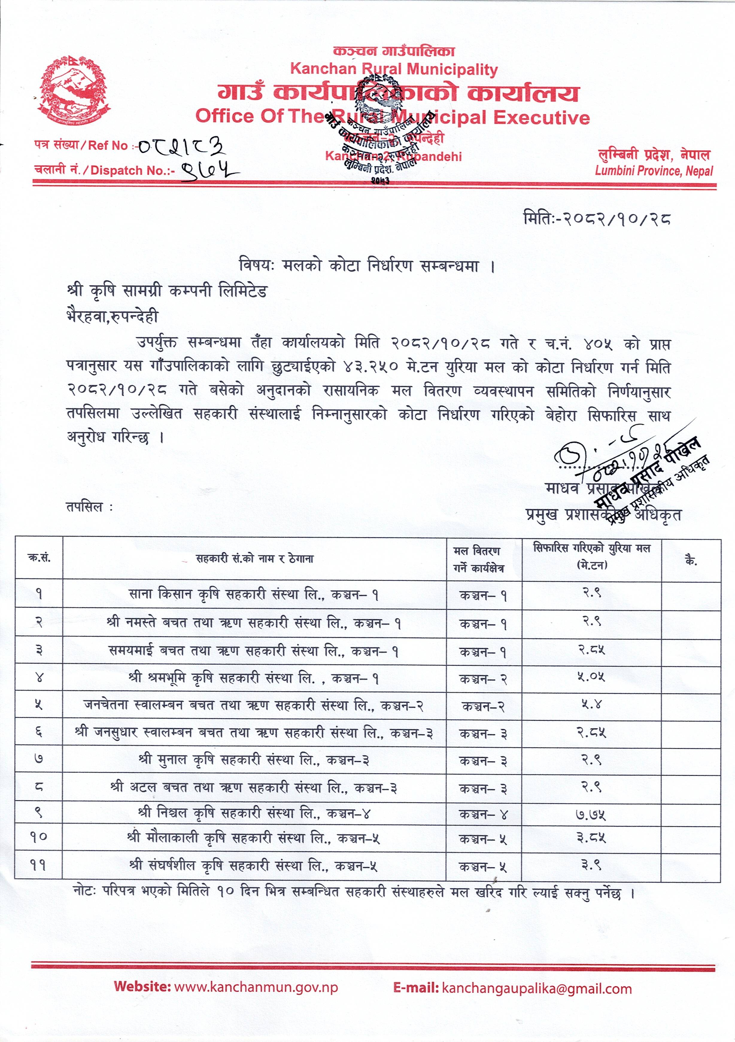 मलको कोटा निर्धारण सम्बन्धी सूचना ।