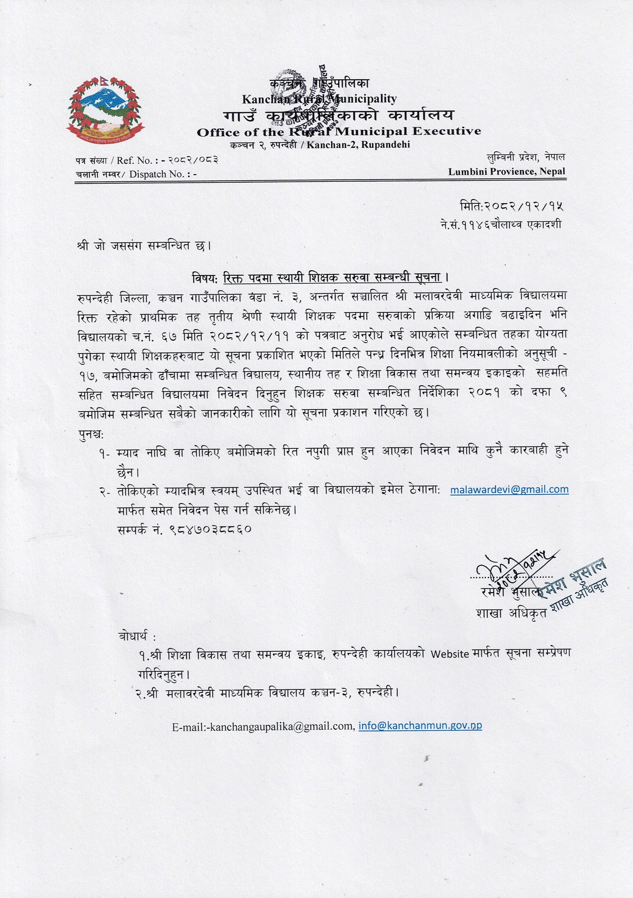 रिक्त पदमा स्थायी शिक्षक सरुवा सम्बन्धी सूचना ।