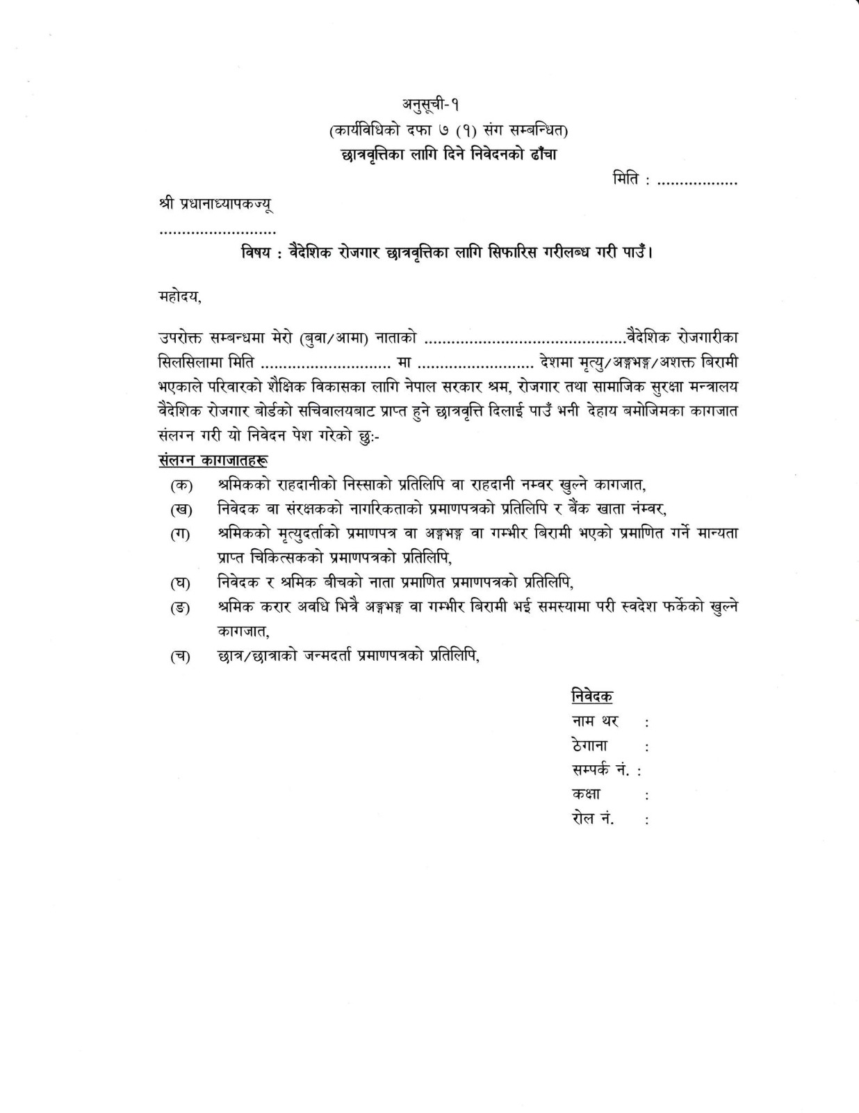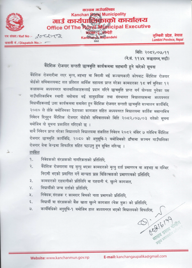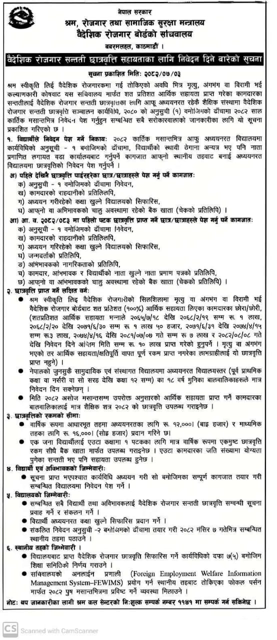 वैदेशिक रोजगार सन्तती छात्रवृत्ति कार्यक्रममा सहभागी हुने बारेको सूचना ।