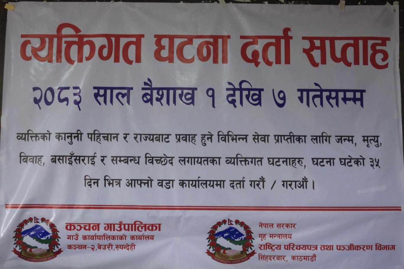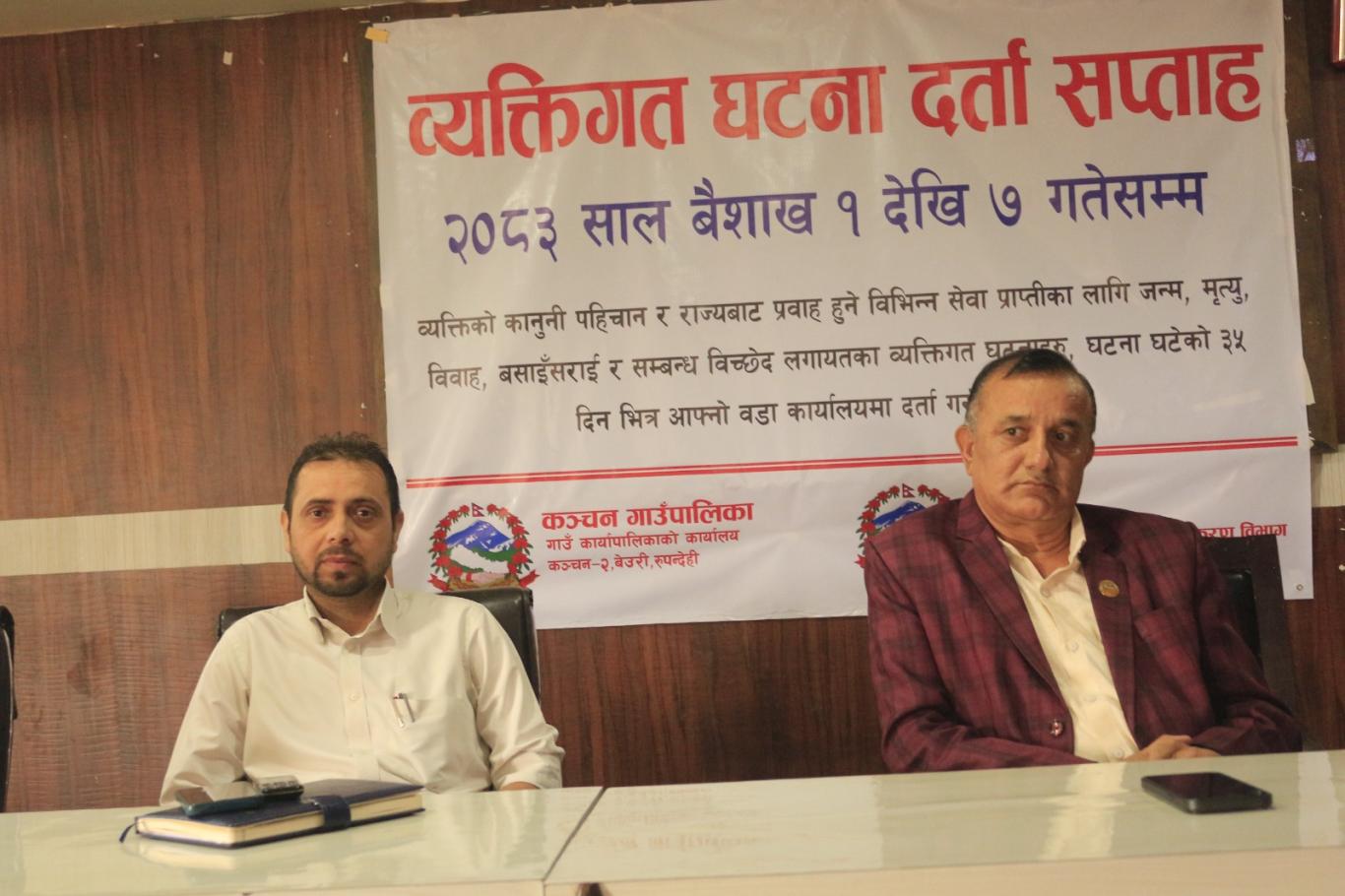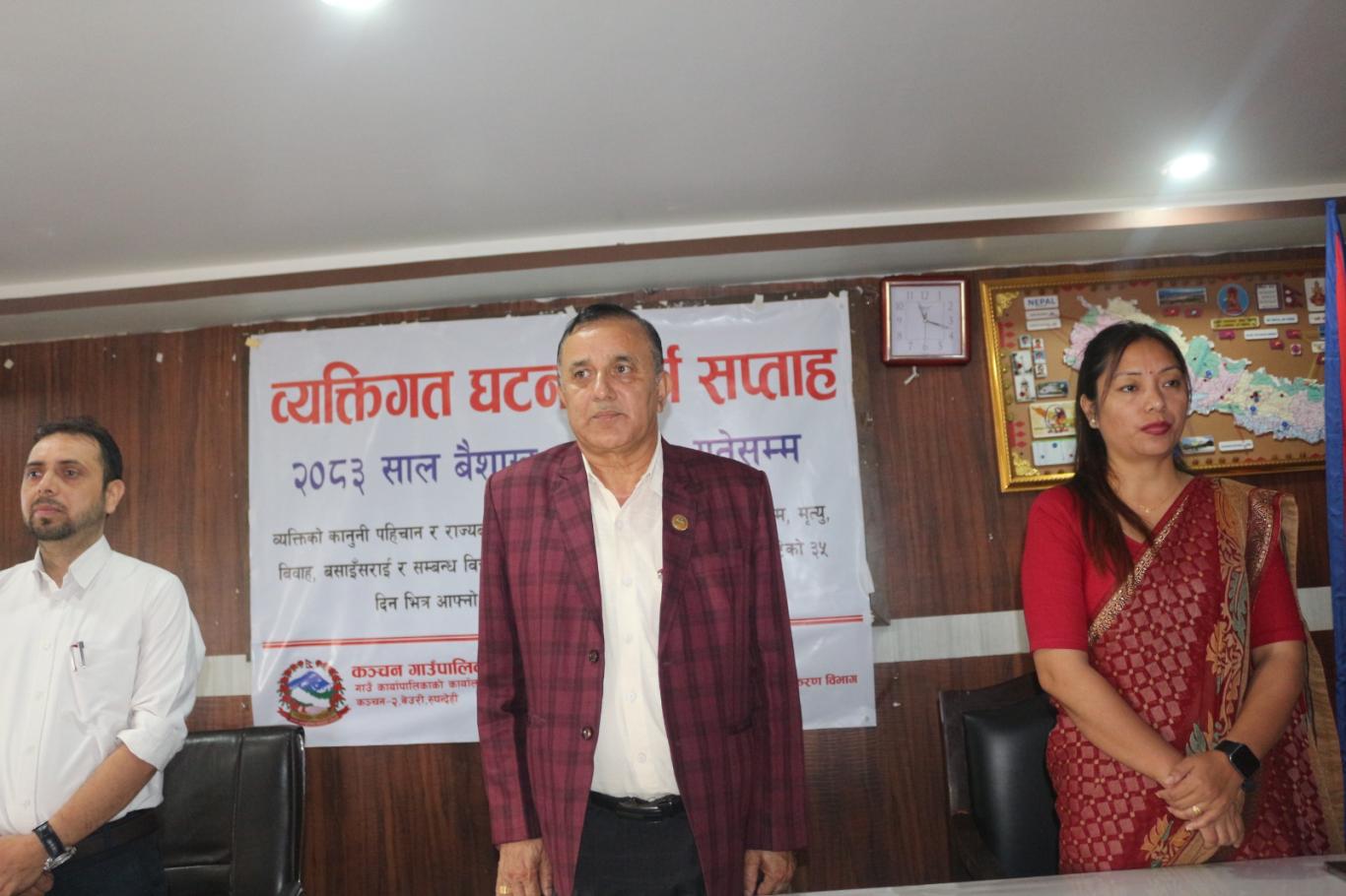 मिति २०८३ साल बैशाख २ गते व्यक्तिगत घटना दर्ता दिवसको अवसरमा घटना दर्ता सप्ताहा उद्घाटन समारोहमा सम्पन्न भएको छ । सो कार्यक्रमका केही झलकहरु ।