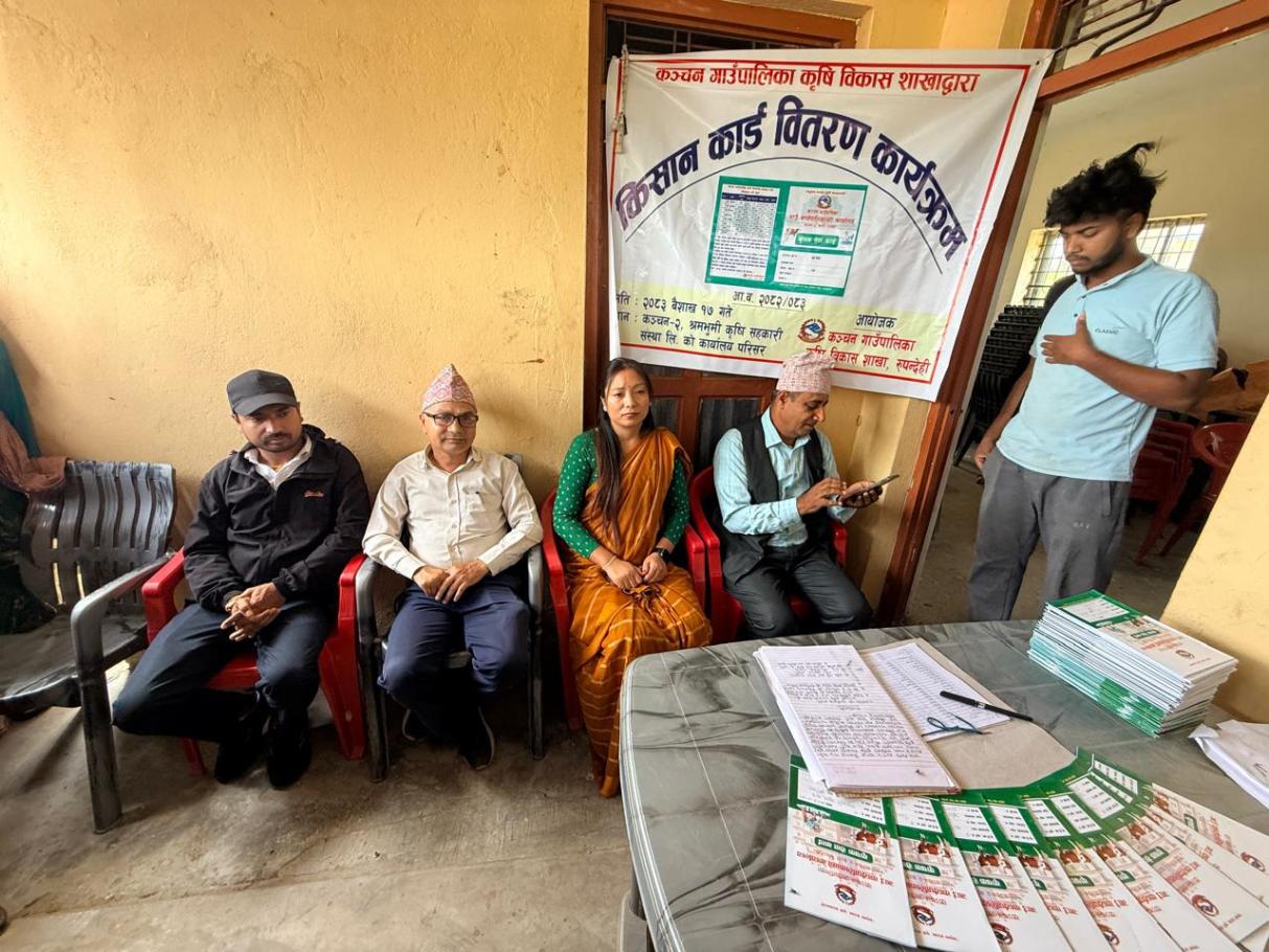 कञ्चन गा.पा. कृषि विकास शाखाबाट आज मिति २०८३/०१/१७ गते बिहीबार देखि वडा नं २ श्रम भुमि कृषि सहकारीबाट कृषक सेवा कार्ड वितरण सुरु गरिएको छ ।