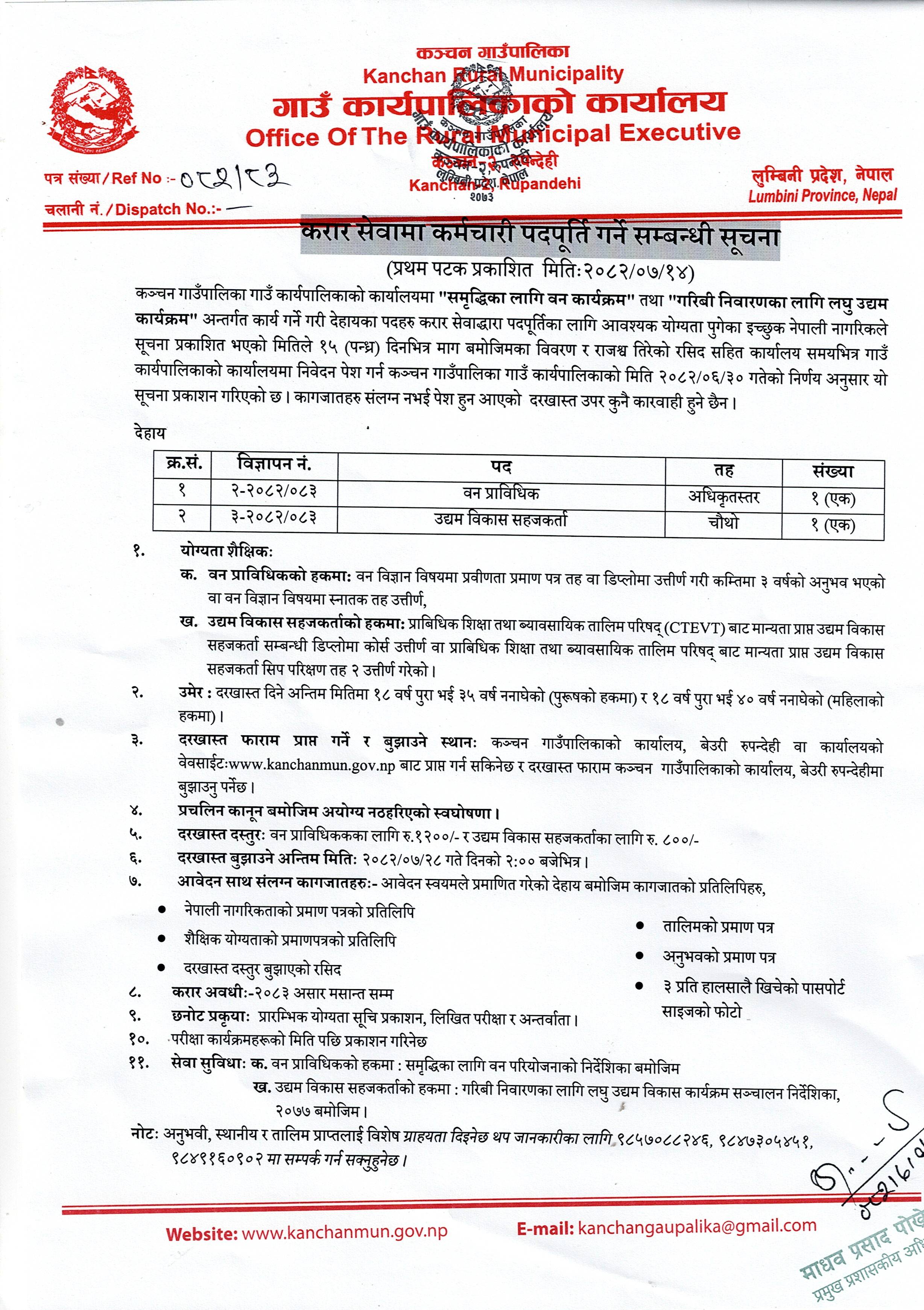 करार सेवामा कर्मचारी पदपूर्ति गर्ने सम्बन्धी सूचना ।