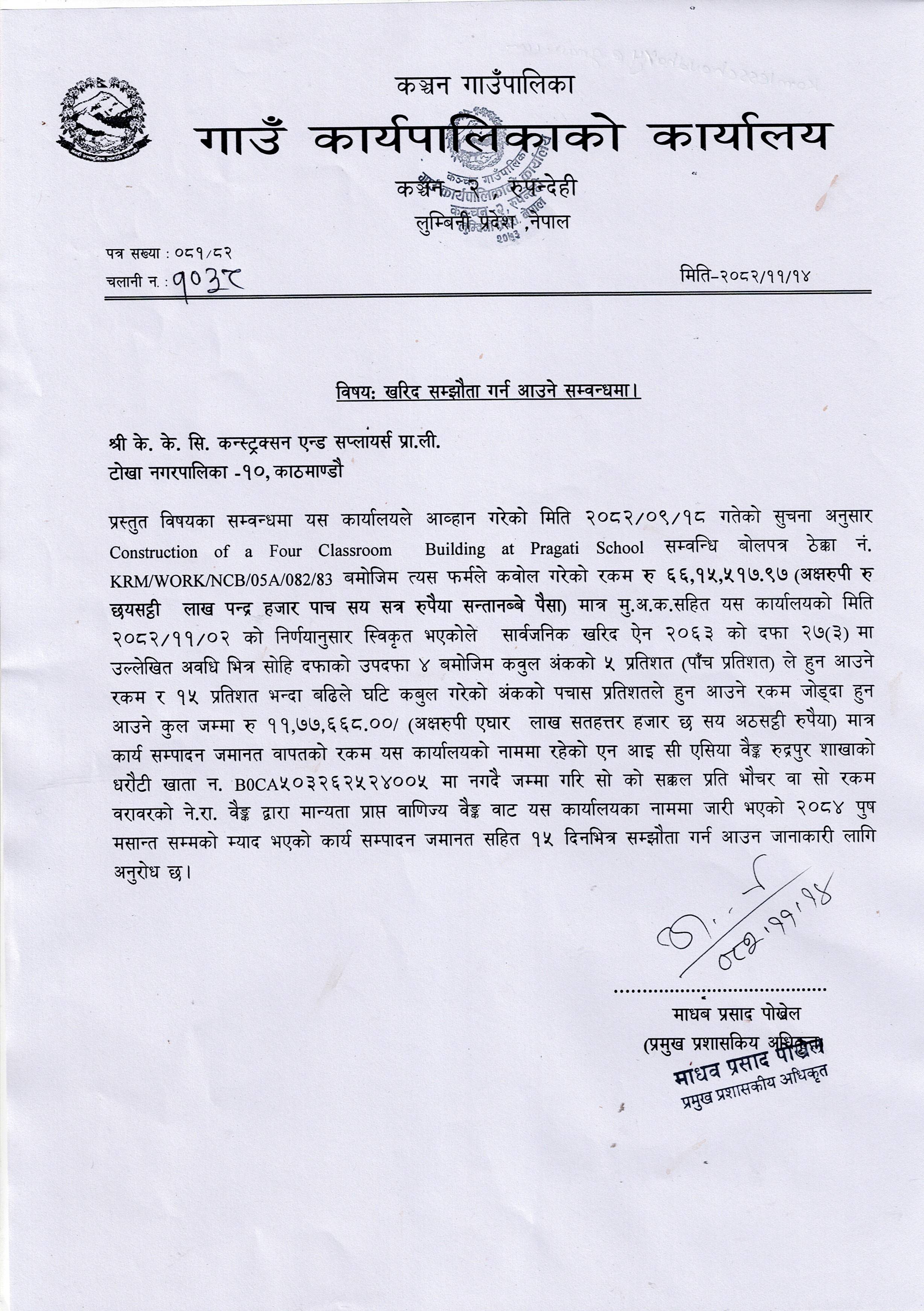 खरिद सम्झौता गर्न आउने सम्बन्धी सूचना ।