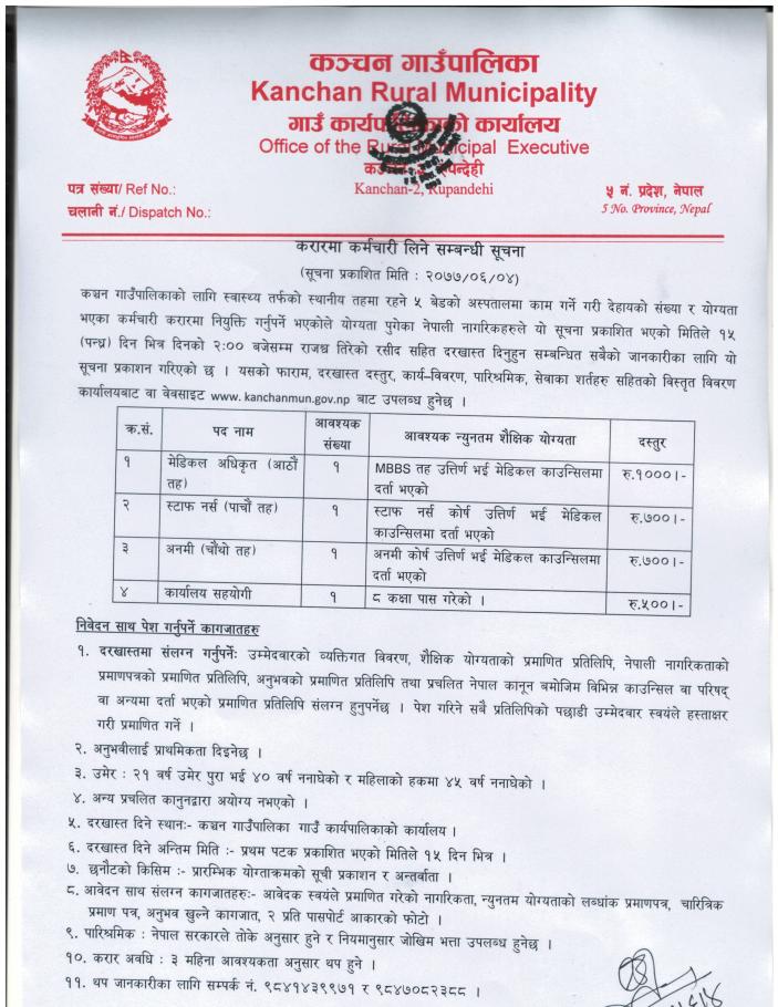 गाउँपालिकामा ५ बेडको अस्पताल सञ्चालनका लागि कर्मचारी भर्ना सम्बन्धी सूचना !