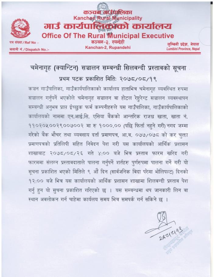 चमेनागृह (क्यान्टिन )सञ्चालन सम्बन्धि सिलबन्दी प्रस्तावको सूचना ।