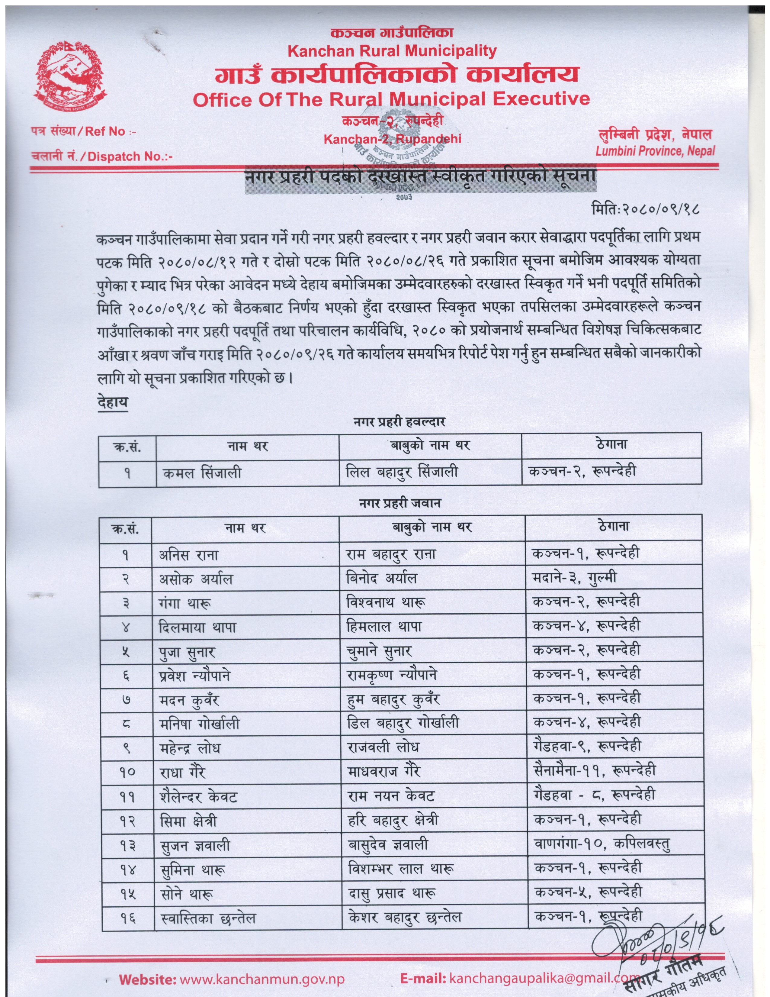 नगर प्रहरी दरखास्त स्वीकृत गरिएको सूचना ।