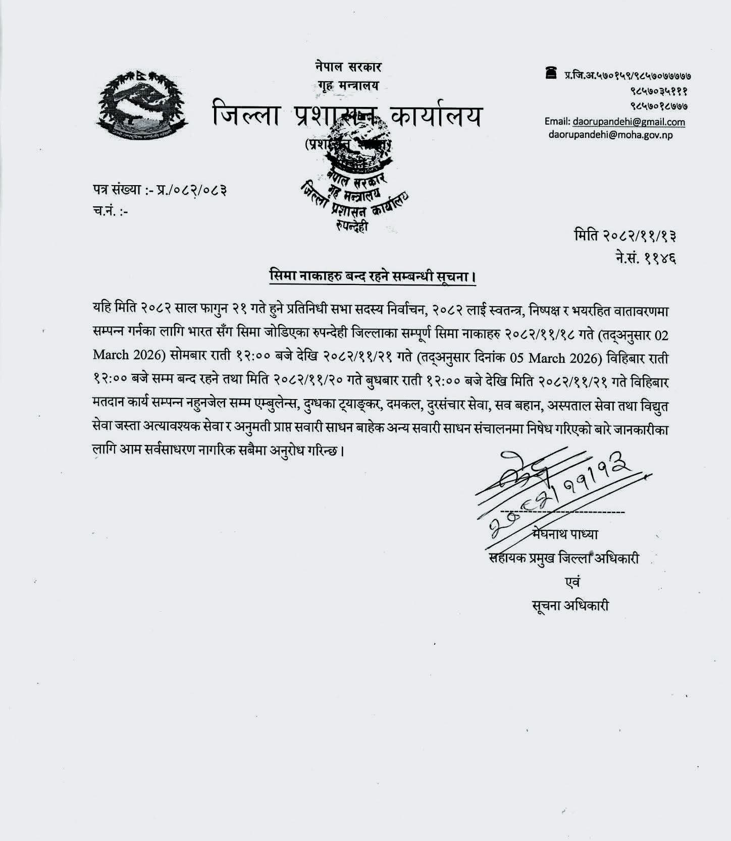 नाका बन्द रहने सम्बन्धी सूचना ।
