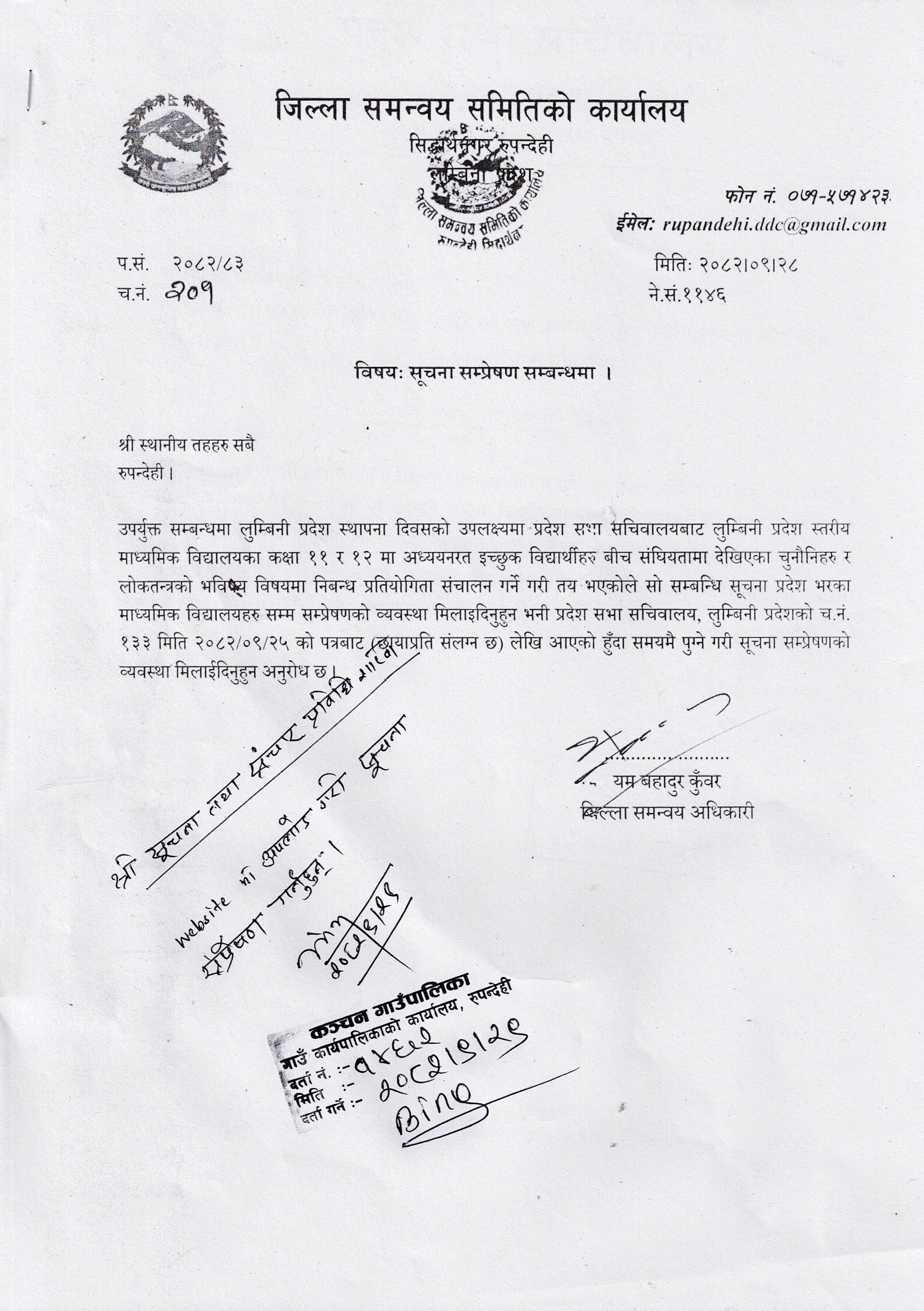 रुपन्देहीको कञ्चन गाउँपालिकाले कञ्चन गाउँपालिकाबाट #एसइईमा उत्कृष्ट नतिजा ल्याएका बिद्यार्थी र विद्यालयहरुलाई विहिवार बधाई तथा शुभकामना दिएको छ ।