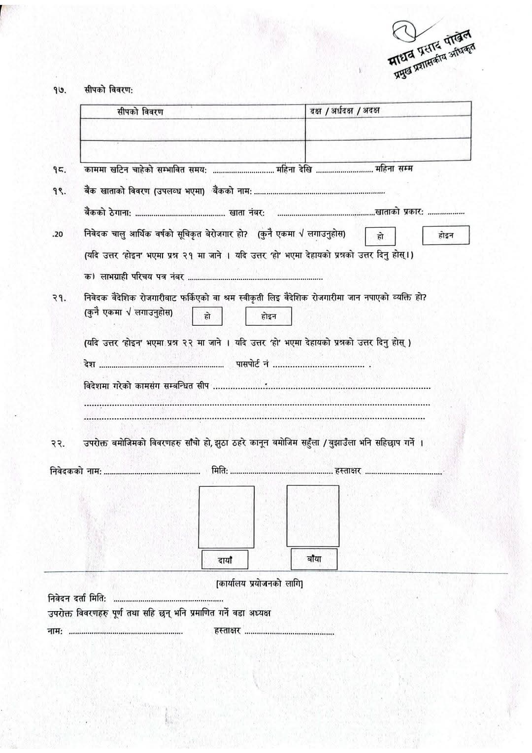 वडा अध्यक्ष र सचिवहरु