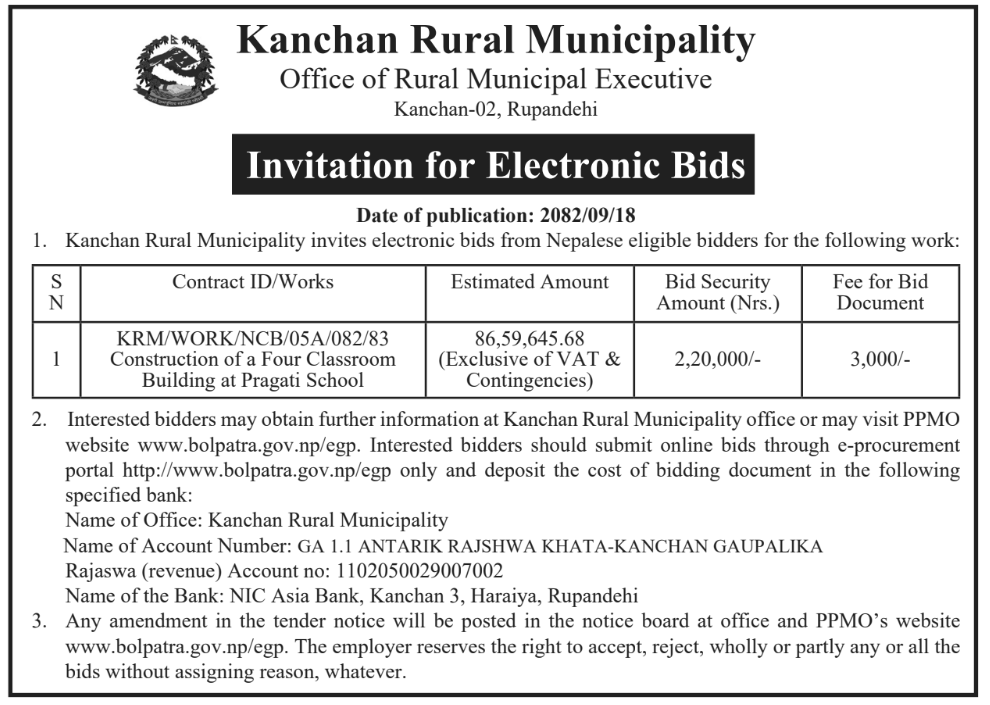 विद्युत्तीय बोलपत्र आव्हान सम्बन्धी सूचना ।