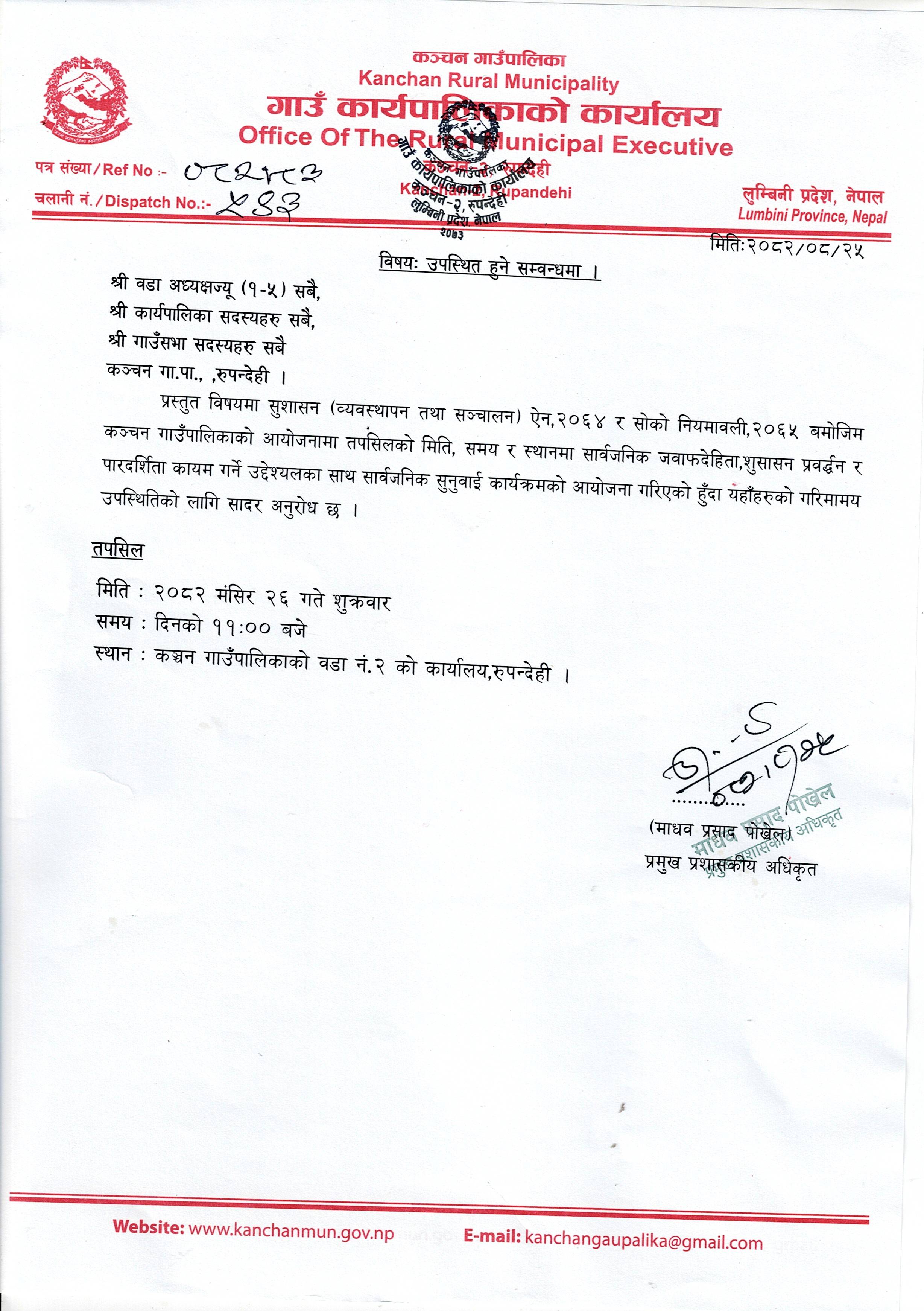 सार्वजनिक सुनुवाईमा उपस्थित हुने सम्बन्धमा ।
