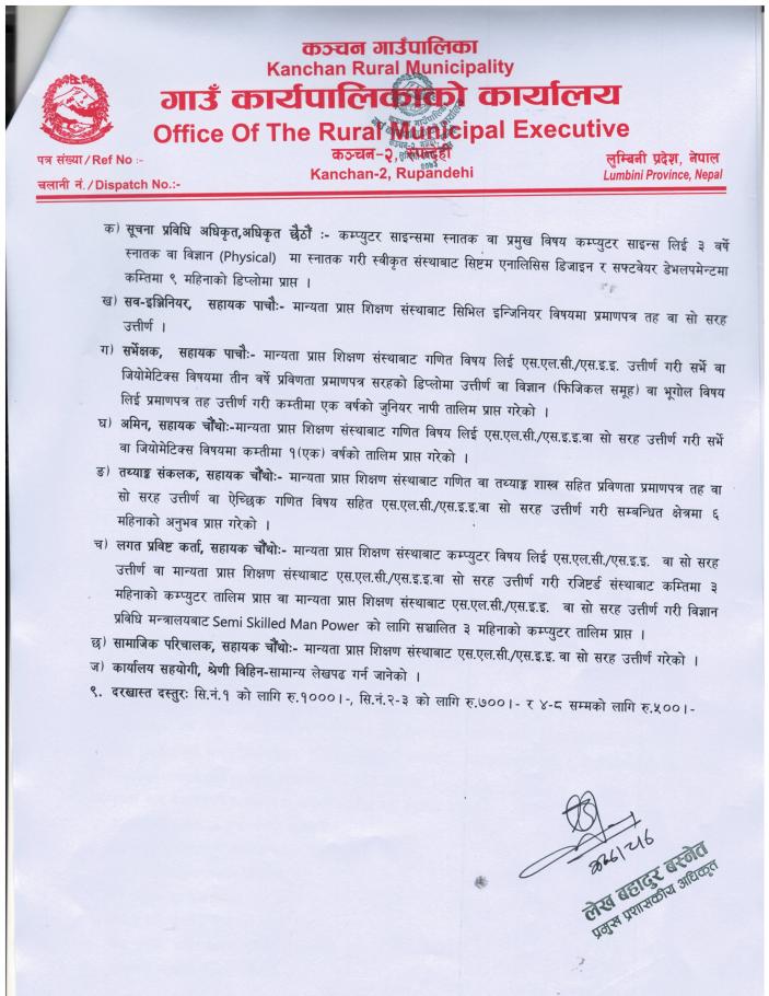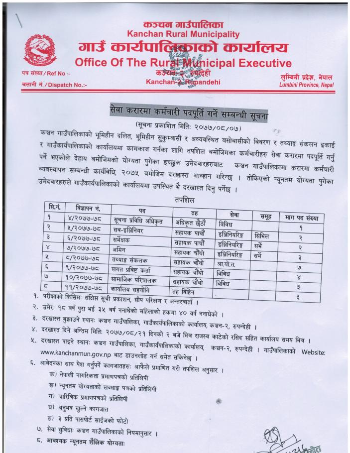 सेवा करारमा कर्मचारी पदपूर्ती सम्बन्धी सूचना